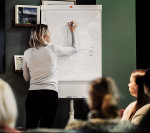 Som ledare behöver du också kunna göra ett gott intryck på scenen och visa upp dina färdigheter och dig själv som förebild. Vi tränar scennärvaro, pedagogiska upplägg och kroppspåk. Målet är att du ska känna lust och nyfikenhet inför att möta din publik!